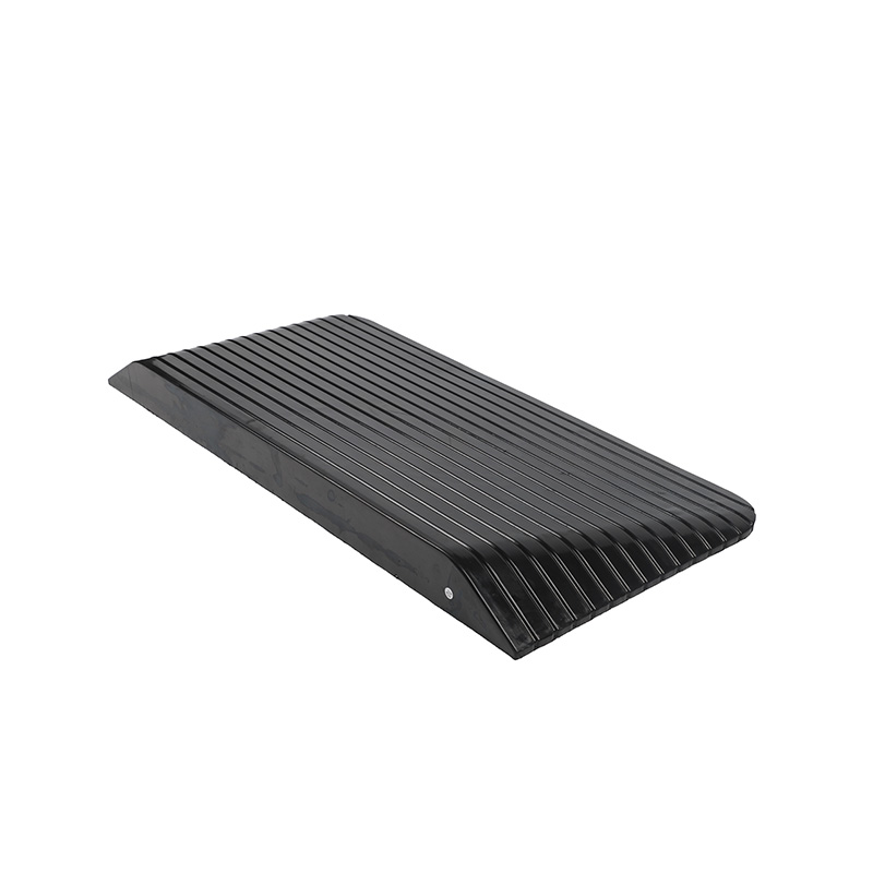 Portable lightweight rubber threshold ramps are made from lightweight rubber for portability and durability for both indoor and outdoor use. Its unique design makes wheelchair access transitions easier and smoother. Whether in a home environment or a commercial space, simply placing this ramp allows wheelchair users to easily negotiate thresholds or other obstacles for barrier-free access.